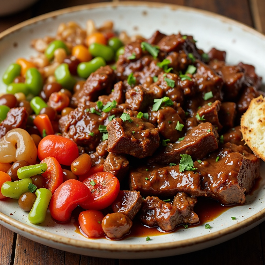 La carne de res es una buena fuente de proteínas magras y hierro. Para reducir el contenido de grasa, asegúrate de cocinar a fuego medio y verificar la cocción de la carne. La salsa de tomate casera y el vinagre de manzana aportan sabores ricos sin añadir muchos azúcares añadidos. Servir con opciones saludables como ensaladas puede ayudar a equilibrar el plato.