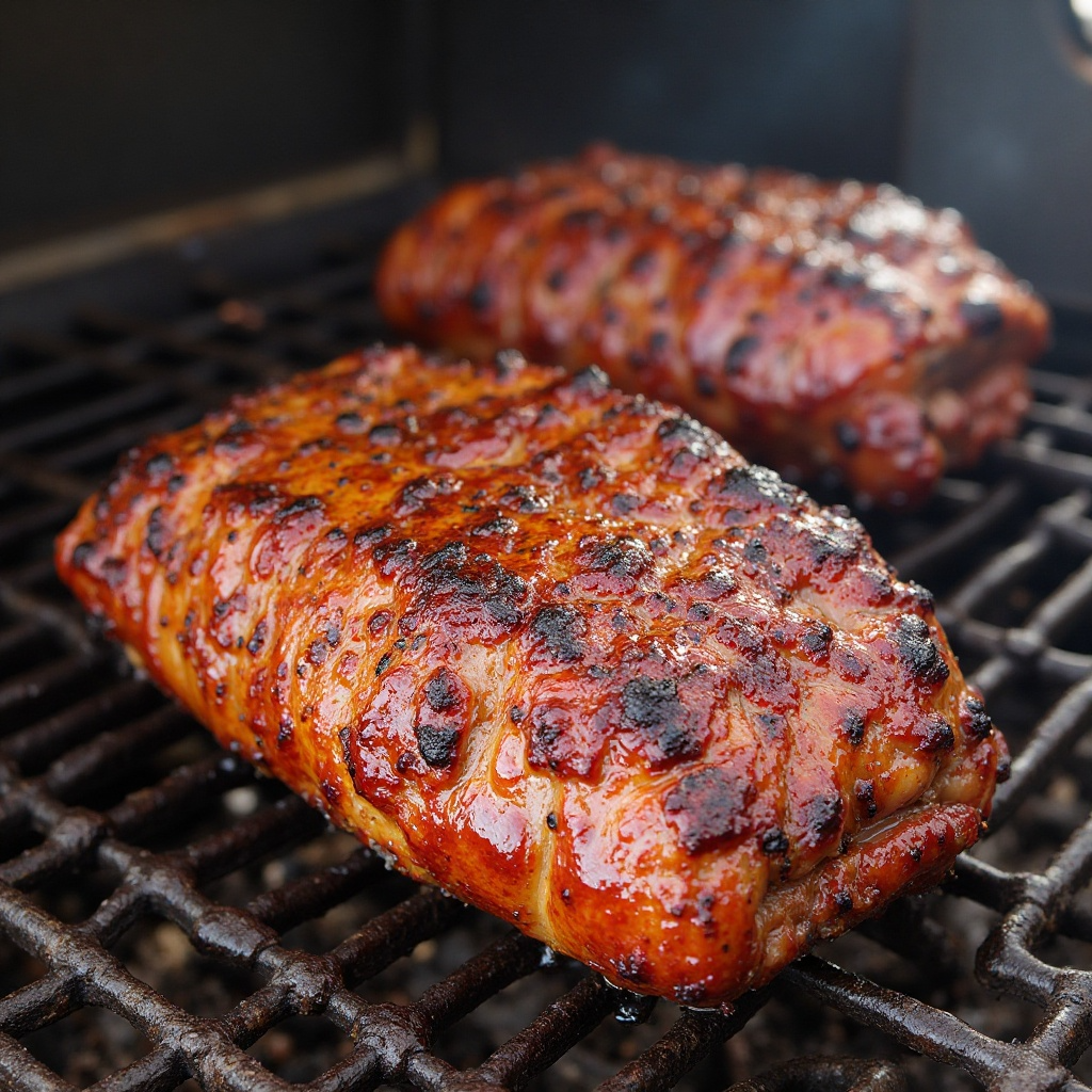 - Coloca las rodajas de cerdo sobre las brasas y asa a fuego lento, cocinando por ambos lados. Para asegurar una cocción uniforme, puedes cubrir la parrilla con una tapa o plásticos transparentes para crear un ambiente ahumado.