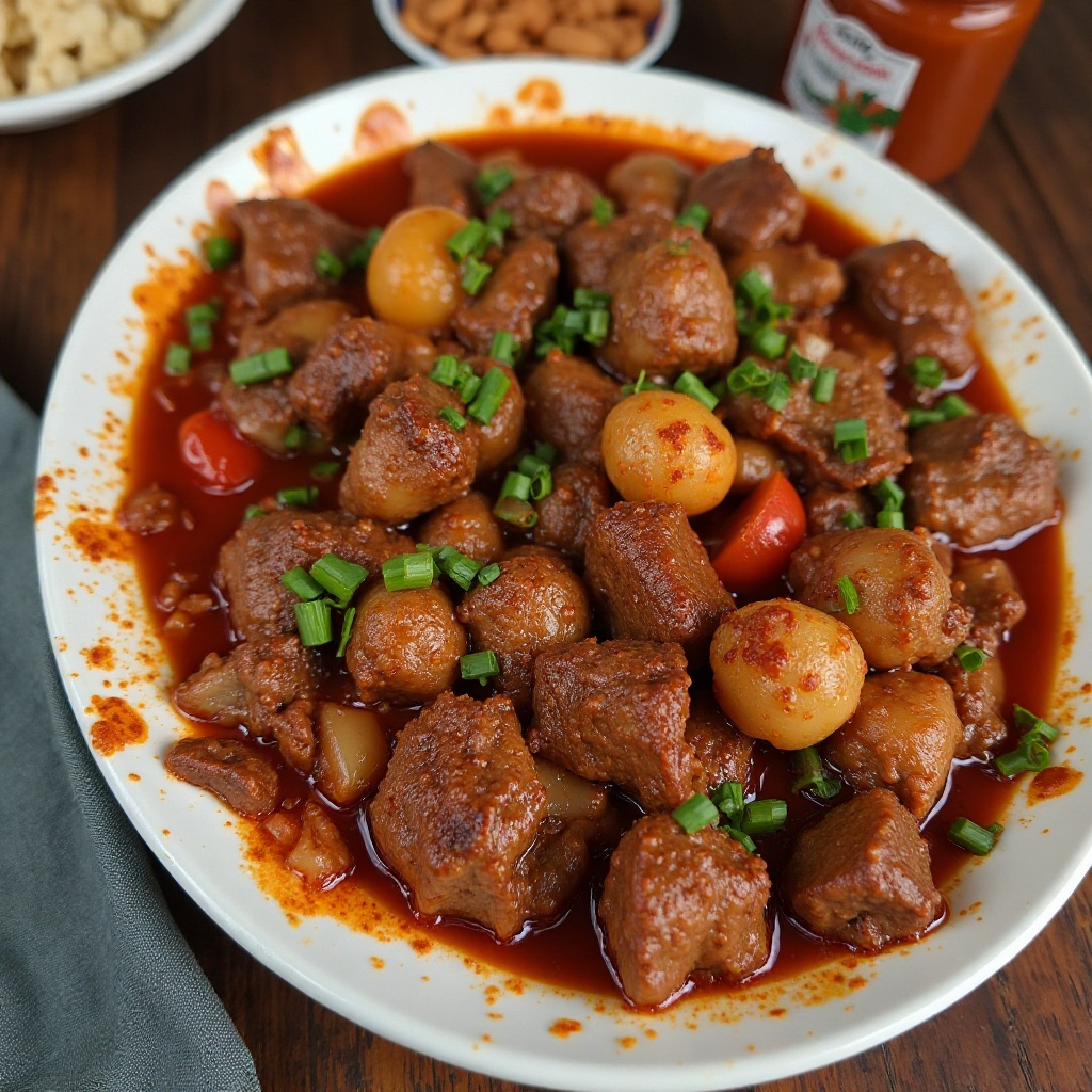 - 4 libras de carne de res cortada en cubos (se puede usar cualquier corte, como brisket o punto)