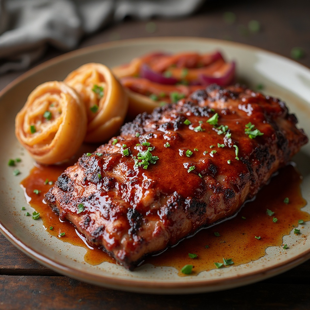 5. Sirve la barbacoa Texana con una porción de cebolla a la parrilla, sumergiéndola en más salsa si deseas.