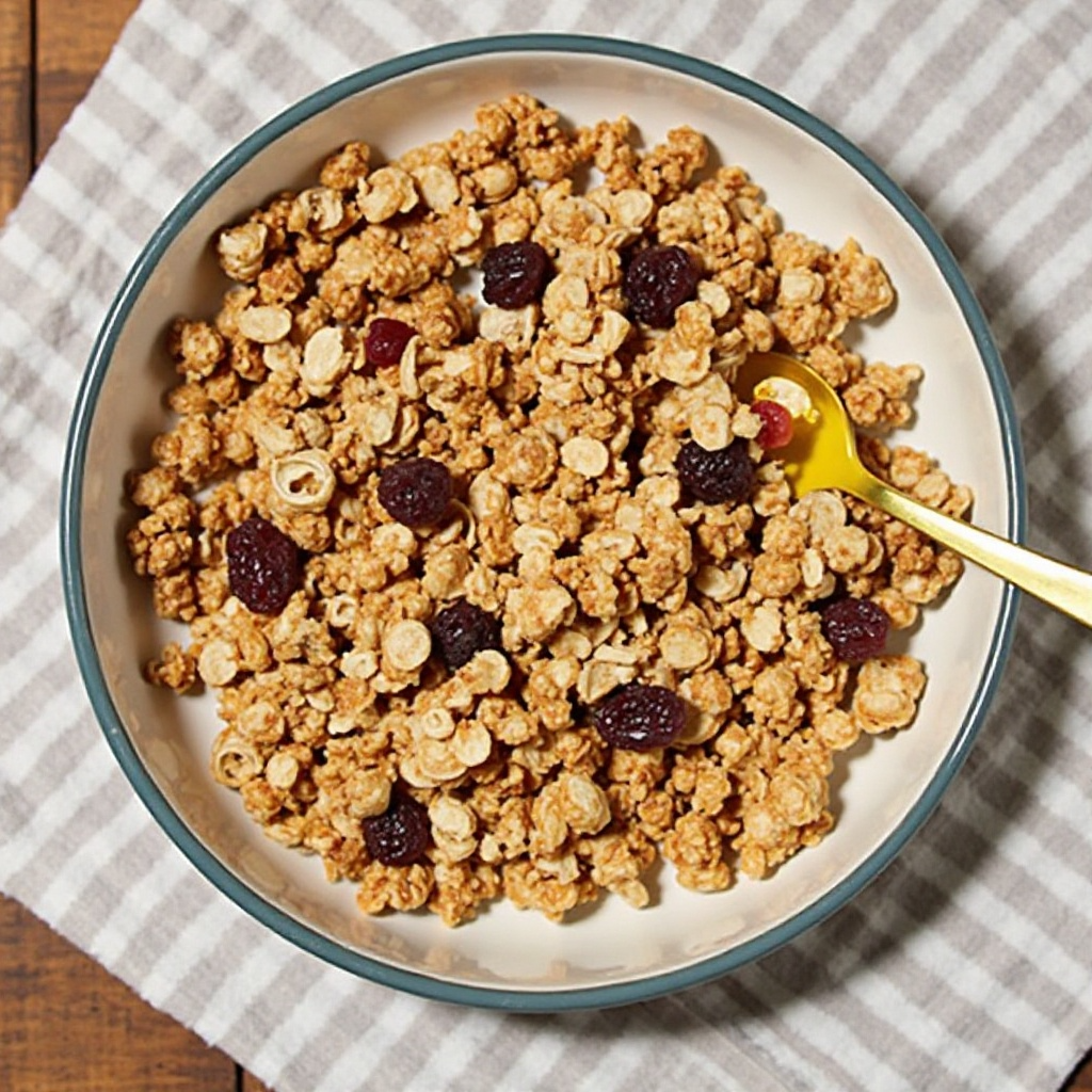 Esta receta de granola es una excelente fuente de fibra gracias a la avena y las frutas deshidratadas. Los cereales Kellogg’s aportan un toque crujiente y añadiendo nueces se proporciona proteínas adicionales. Considera ajustar el uso de miel según tus preferencias de dulzor o restricciones dietéticas. La granola también es una excelente opción para preparar un postre o snack saludable en lugar de otros alimentos procesados.