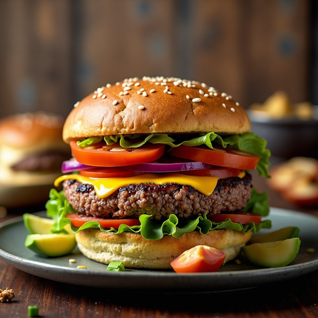 La región de Liverpool ha sido profundamente influenciada por su música y cultura, siendo un centro cultural en el Reino Unido. Este restaurante imaginario no solo celebra la comida sino también la rica herencia musical de Liverpool. Imagina sentarte en una taberna local, escuchando a los Beatles mientras disfrutas de esta delgada y sabrosa hamburguesa, sintiendo que estás en el corazón de la música y la cocina británica.