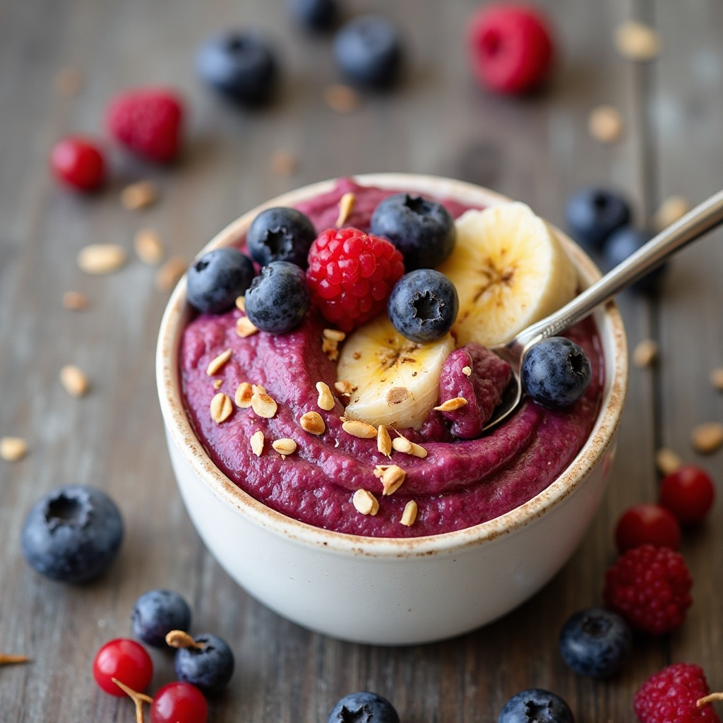 Este postre es una opción saludable, rica en antioxidantes gracias a las bayas silvestres y fuente de fibra con la avena. Los plátanos aportan potasio y la leche de almendras añade un toque cremoso sin saturar el contenido de grasa. La opción sin leche de almendras lo hace apto para una dieta libre de lácteos. ¡Disfruta de los beneficios nutricionales mientras deleitas tu paladar!