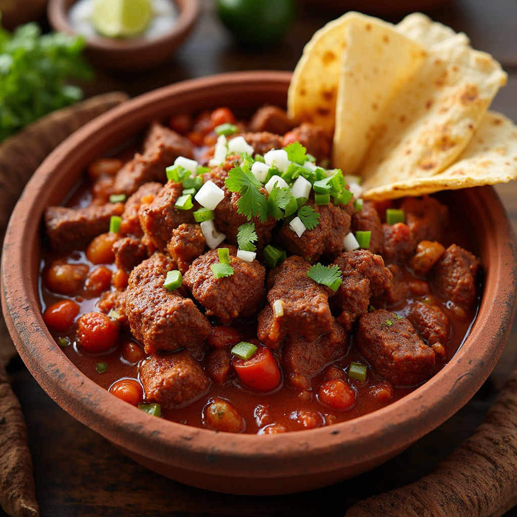 La birria es un plato tradicional de Guadalajara, México, conocido por su sabor a carne tierna y especias. Este guiso se caracteriza por su aroma y la consistencia cremosa del mole que lo acompaña. Ideal para compartir en reuniones familiares o para degustar en una tarde soleada, este plato captura la esencia de la cocina mexicana.