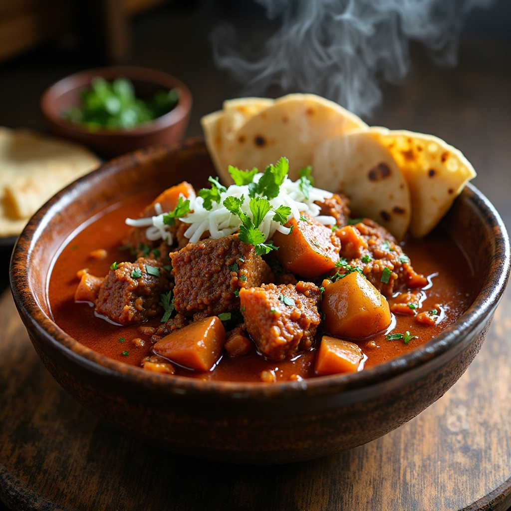 La birria es un plato tradicional mexicano, especialmente famoso en el estado de Zacatecas. Esta versión es conocida por su mezcla de especias y cortes de carne que le dan un sabor profundo y un toque ahumado característico. Aunque puede ser considerada una comida fuerte debido a su intensidad de sabores, muchos disfrutan de su capacidad para calentar el alma con cada bocado.