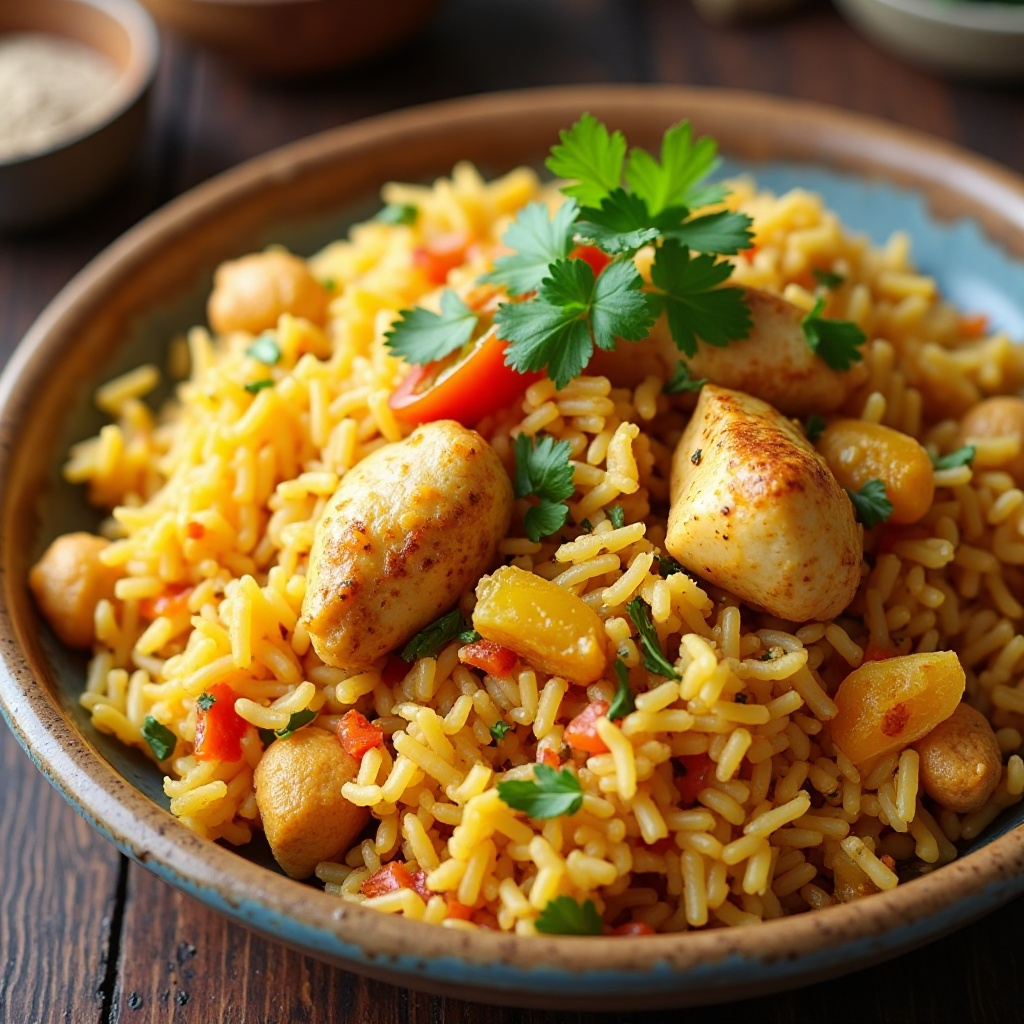 El Biryani es un plato icónico de la cocina india, popularizado por su mezcla de sabores especiados y texturas variadas. Esta versión adaptada para ser disfrutada por alguien en Estados Unidos incluye ingredientes accesibles sin sacrificar el sabor característico de la receta original. Es perfecto para una comida familiar o como plato principal en reuniones.