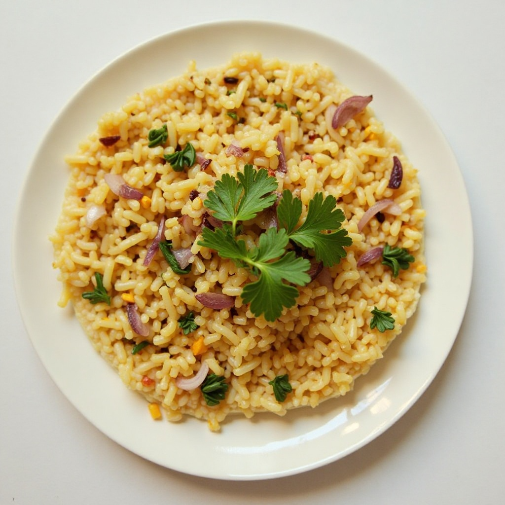 Este plato combina elementos saludables como los granos enteros (arroz) y proteínas magras (Bis Keemiya), sin olvidarse de la importancia de las especias para el sabor. La cebolla y el jengibre aportan antioxidantes, mientras que el perejil es rico en vitaminas y minerales. Para aquellos con restricciones dietéticas, considera usar arroz integral o panqueques de queso sin lactosa si es necesario.