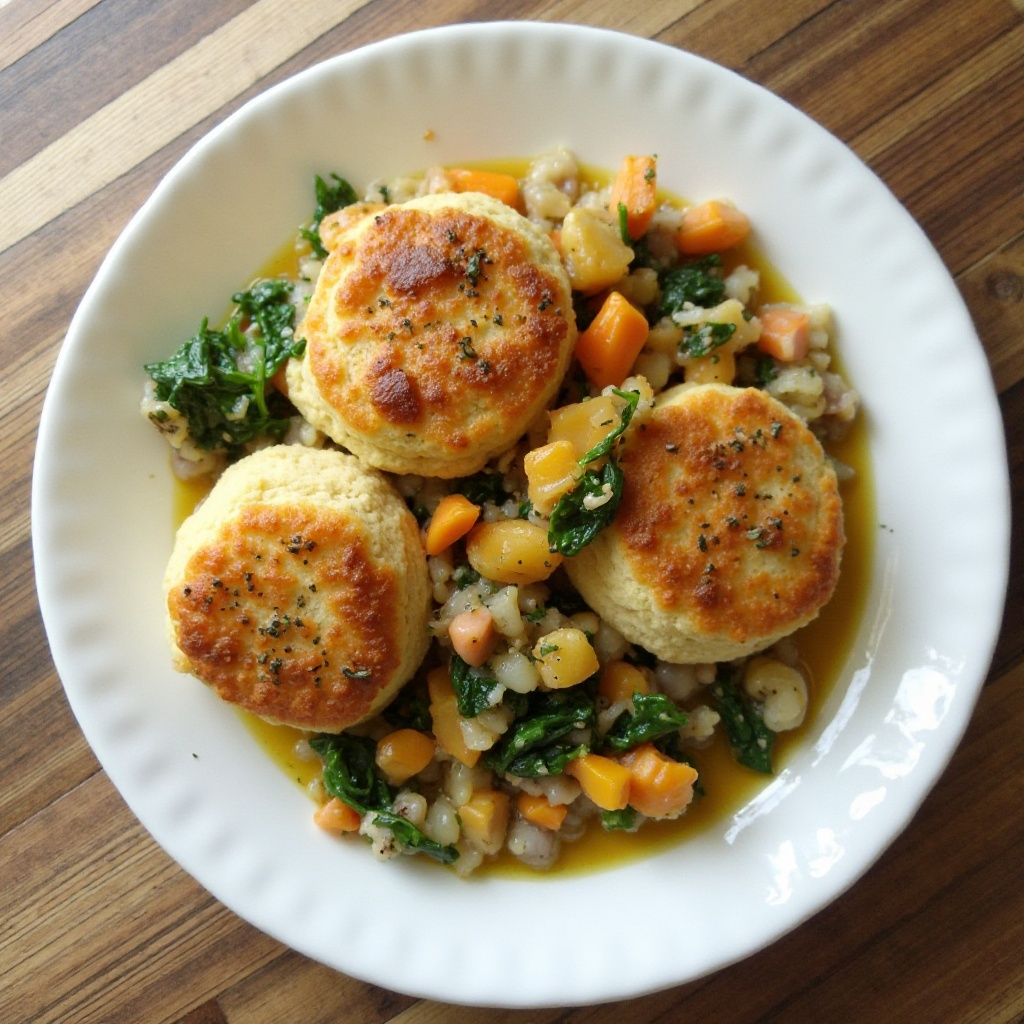 Este plato ofrece una alternativa saludable a Biscuits and Gravy tradicional, con un enfoque en verduras frescas y sin harina refinada. El uso de semillas de linaza aumenta los omega-3, beneficiosos para la salud del corazón y el cerebro. Si prefieres una versión más ligera, reduce el aceite de oliva o opta por una versión sin aceite para cocinar los vegetales.