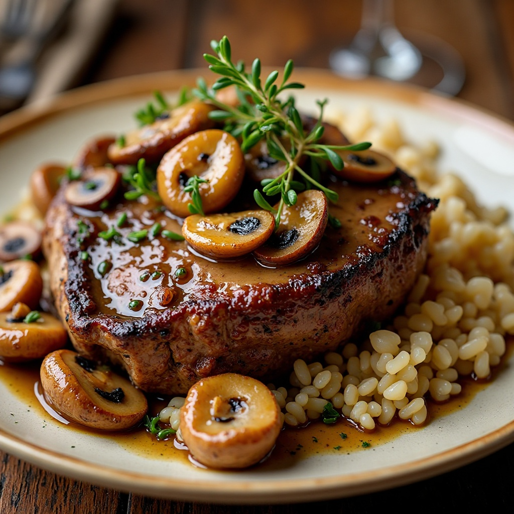 Receta de Bison Roast con Champiñones y Arroz Pilaf (Canmore, Canadá)