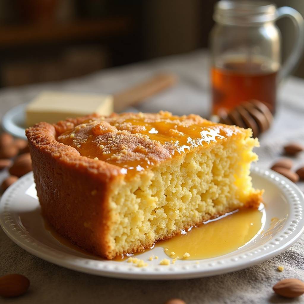 En La_Pedriza, un bello espacio natural en Madrid, España, se cultiva una miel singular y aromática procedente de la Sierra de Guadarrama. Esta receta de bizcocho aprovecha los dulces sabores de esta miel local, combinándolos con almendras para crear un postre que deleita el paladar.