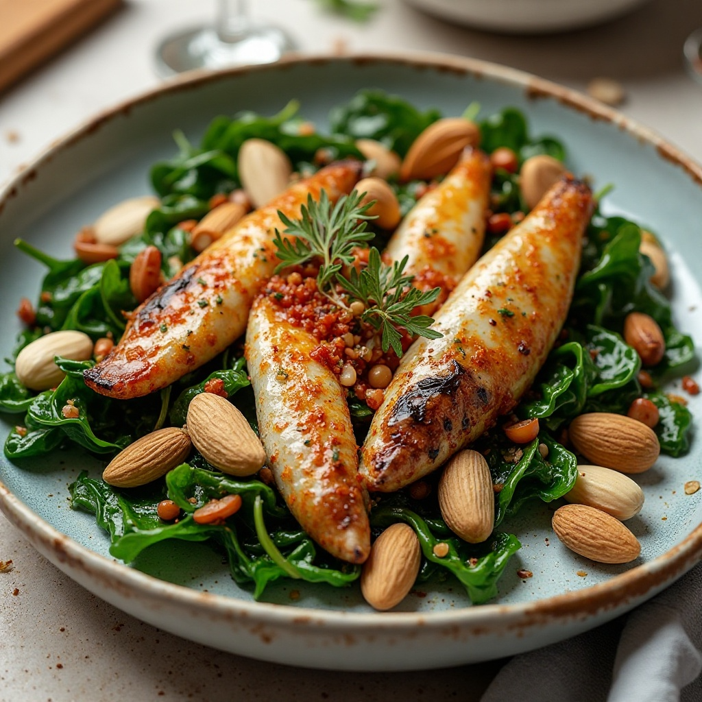 En la región de Málaga, España, el boquerón es un ingrediente clave en su gastronomía. Estos arenques salados son tradicionalmente preparados en vinagre, pero aquí les presentamos una versión innovadora que los combina con espinacas y almendras, dos ingredientes saludables y ricos en sabor propios de la dieta mediterránea.