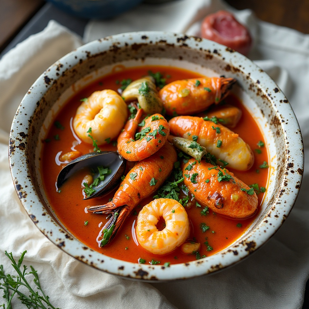 La Bouillabaisse es un plato tradicional provenzal que se ha convertido en un emblema de la cocina francesa. En Brest, una ciudad costera en Bretaña, Francia, esta receta ha sido adaptada para incluir mariscos frescos locales. Ideal para una comida festiva o para disfrutar en una noche de verano junto al mar.