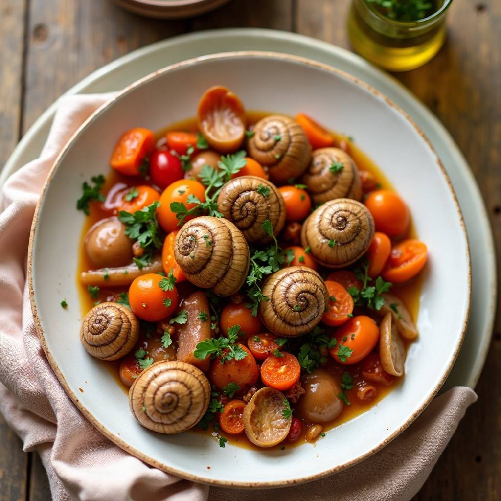 Este plato ofrece una opción saludable con caracoles, ricos en calcio y bajo en grasas, y vegetales que aportan vitaminas y fibra. El vino tinto puede aportar beneficios para la salud cardiovascular, siempre consumido con moderación. Evita sal excesiva y opta por especias y hierbas frescas para realzar el sabor.
