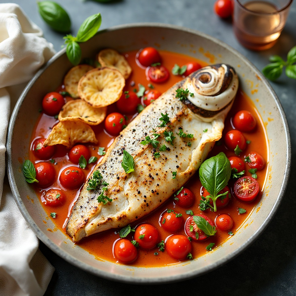 El branzino es una excelente fuente de proteínas y ácidos grasos omega-3, beneficiosos para la salud cardiovascular. Los tomates cherry y las hierbas aportan antioxidantes y fibra, mientras que el aceite de oliva contribuye con sus propiedades antiinflamatorias. Si eres sensible a los lácteos, evita agregar queso o crema en la salsa. Para una versión baja en grasa, puedes reducir el aceite de oliva o usar un aceite con menor contenido calórico.
