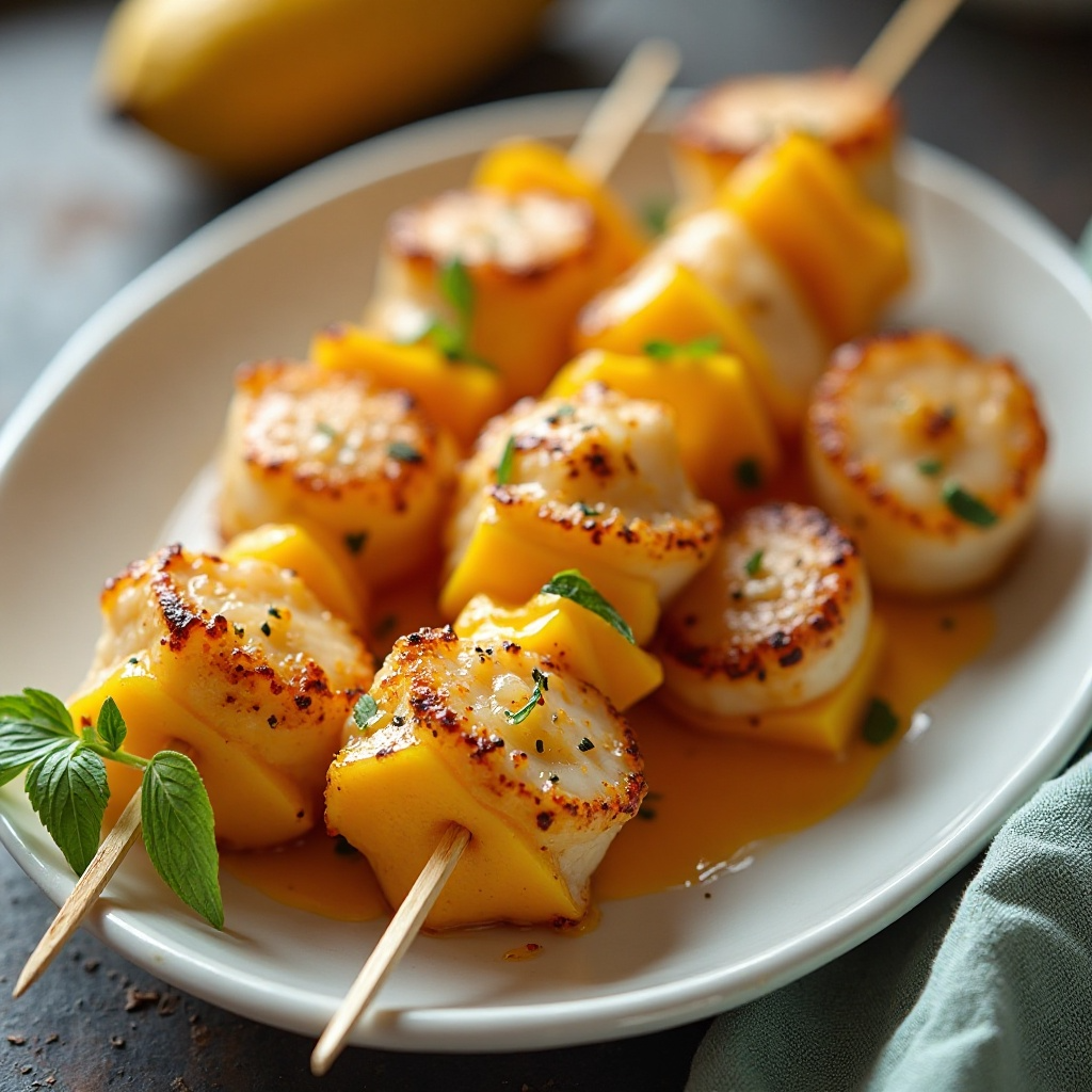 Receta de Brochetas de Bay Scallops con Salsa de Mango