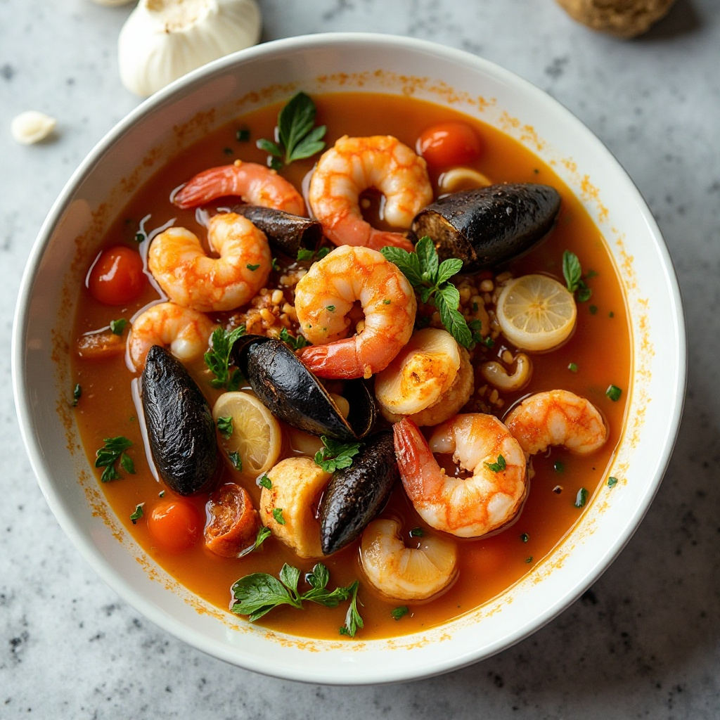 El Brodetto Pescara es una sopa tradicional de la región de Pescara en Italia, conocida por su abundancia de mariscos frescos y sabores mediterráneos. Esta versión adaptada a los gustos de la costa amalfitana incorpora ingredientes locales y un toque ligero que caracteriza a la cocina de Amalfi.