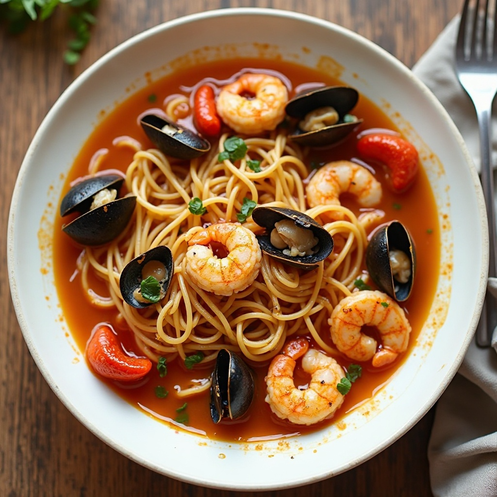 El Brodetto Vastese es un rico y tradicional caldo marino originario del municipio de Vasto, en la región de Abruzzo, Italia. Esta versión moderna combina el sabor original del brodetto con espagueti, creando una experiencia culinaria perfecta para los amantes de la pasta y el marisco. Ideal para una cena familiar o para impresionar a invitados con un toque auténtico de la cocina italiana.