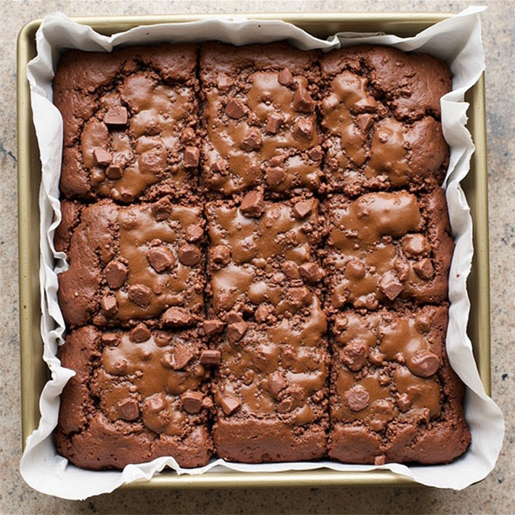 - Precalienta el horno a 180°C (350°F). Engrasar un molde para brownies de 23x23cm y espolvorear ligeramente con azúcar granulado si lo prefieres en la superficie final.