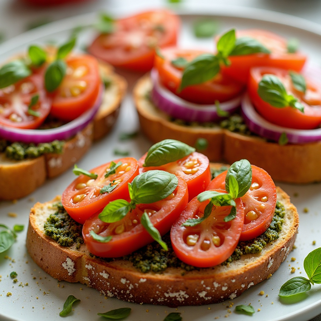 Bruschetta es una tradición culinaria italiana que ha evolucionado a lo largo del tiempo. La versión de Bruschetta al Pesto di Genova es particularmente popular en la región costera de Liguria, donde el aceite de oliva extra virgen juega un papel crucial. Esta receta combina tomates frescos con pesto, una mezcla típica de Italia, utilizando aceite de oliva de calidad que realza todos los sabores.