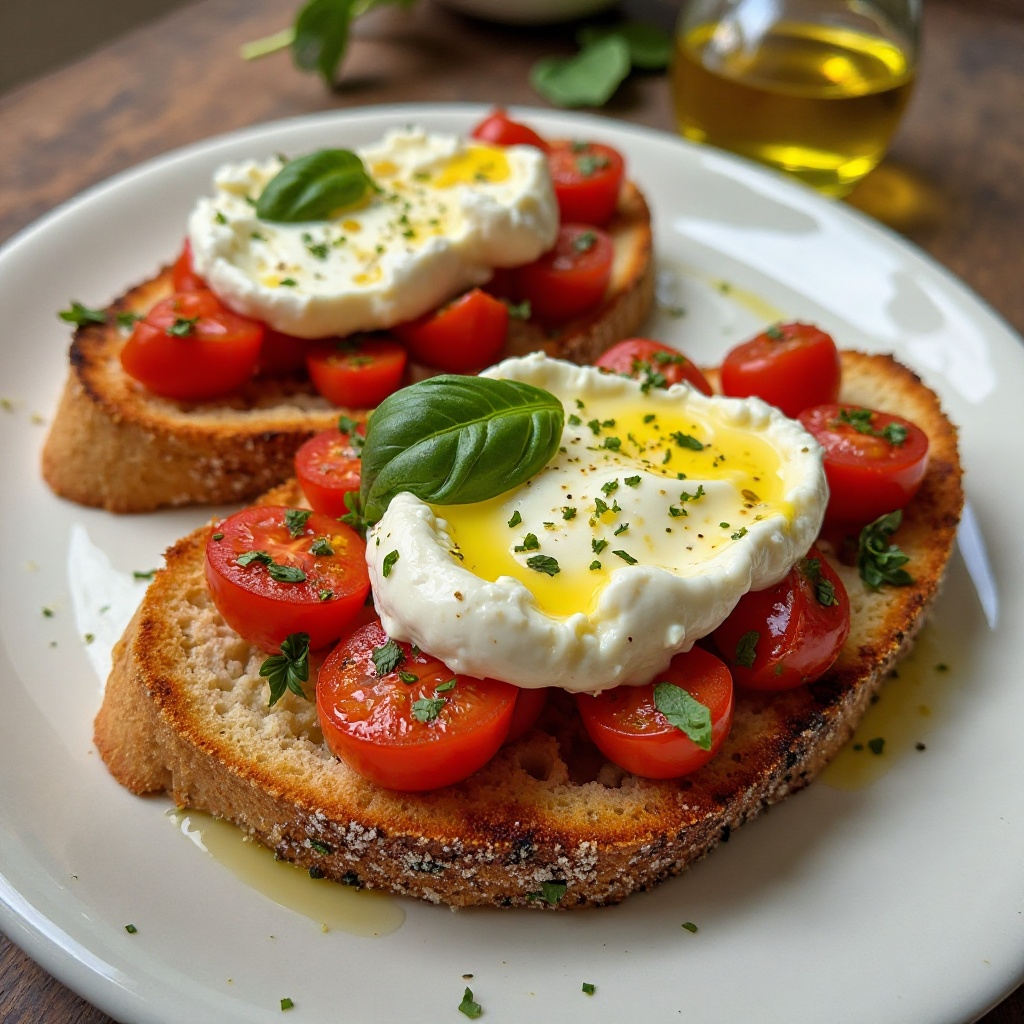 Receta de Bruschetta con Burrata y Tomate de Verano