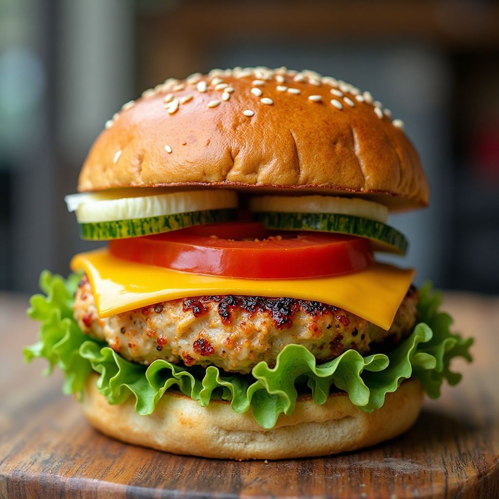 - Una vez las hamburguesas están cocidas, coloca cada una sobre un panecillo de sándwich. Cubre con una hoja de lechuga fresca, tomates cherry, queso cheddar y rodaja de pepino.