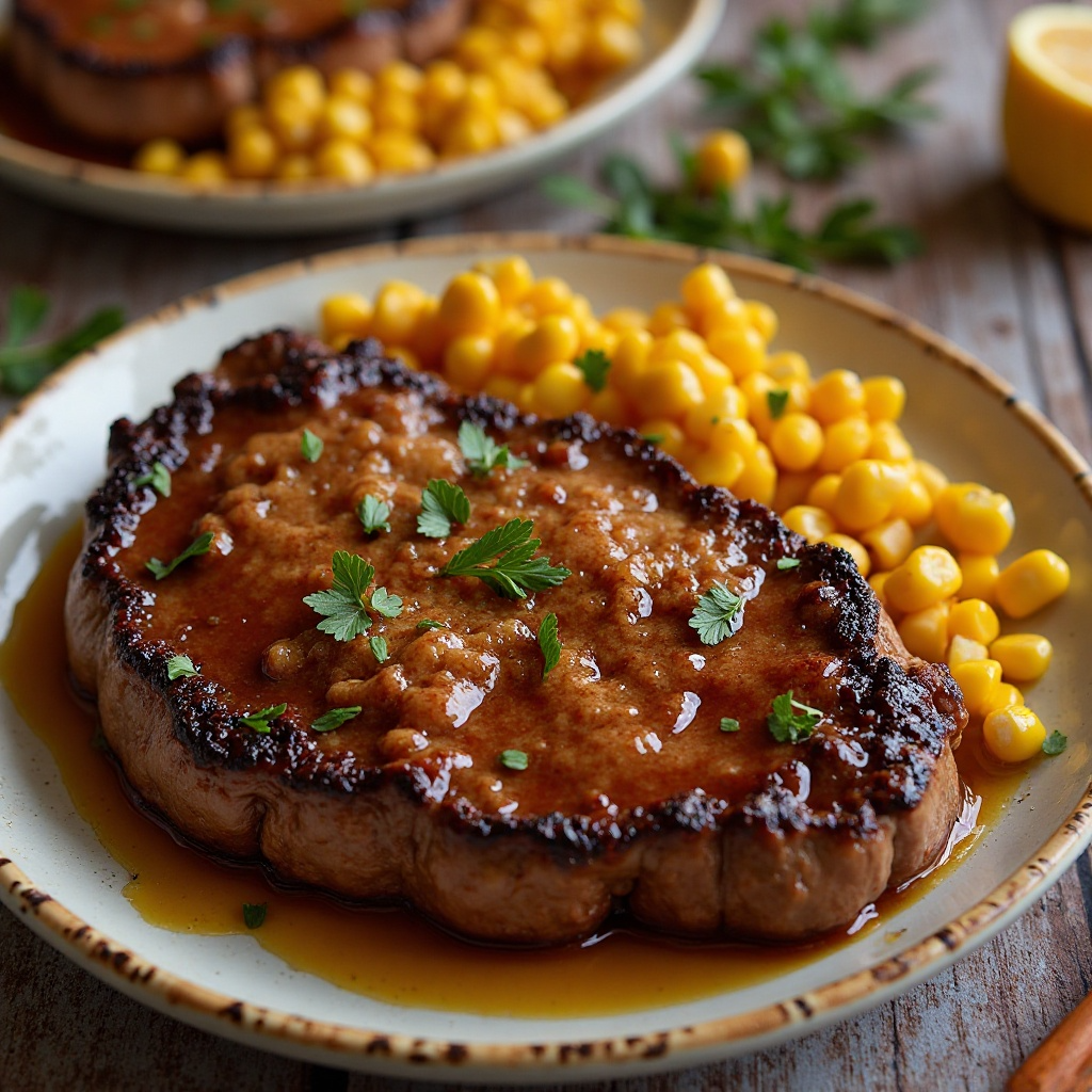 Receta de Buffalo Steak al Horno con Guarnición de Maíz Asado