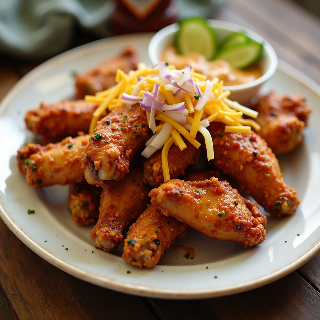 Las wings de búfalo son un clásico de la cocina americana que se originó en la región del Medio Oeste, incluyendo el estado de Wyoming. Este plato es perfecto para un almuerzo o cena informal, ofreciendo una combinación única de sabores ahumados y picantes que caracterizan al búfalo. En esta versión, añadimos un toque local con ingredientes frescos y especias típicas de la región.