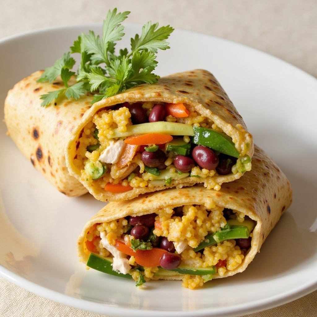 Este burrito fusion es un plato equilibrado que combina proteínas magras de pollo, fibra de los frijoles rojos, grasas saludables del aguacate y antioxidantes de las verduras. Puedes ajustar la cantidad de salsa Sriracha para controlar el picante, adaptando la receta a tus preferencias dietéticas.