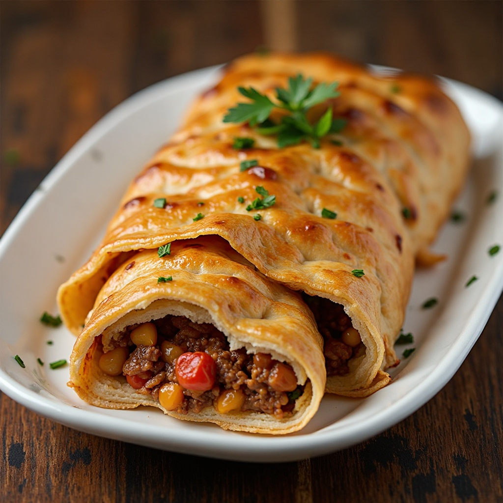 Byrek es un plato tradicional albanés que se disfruta en toda Albania, especialmente en la región de Korçë. Este pastel de filo está hecho con una combinación de queso feta y carne molida, envuelto en capas finas de masa filo. Es una comida completa y sabrosa, ideal para disfrutar con una taza de té turco.