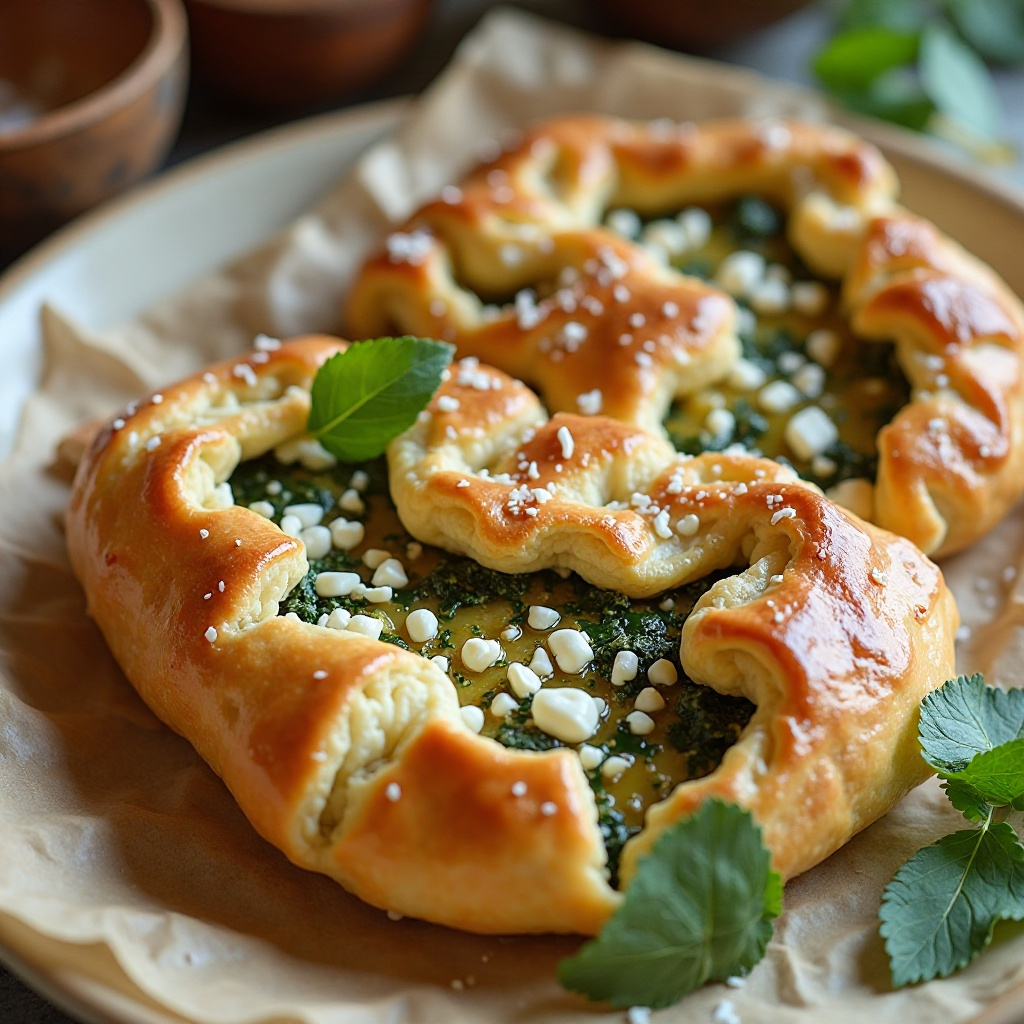 - Para el relleno: Calienta el aceite en una sartén, agrega la cebolla y el ajo, cocinando hasta que estén blandos. Añade las espinacas cocidas, revuélvelas con el ajo y la cebolla. Agrega sal, orégano y queso feta rallado, mezclando bien.