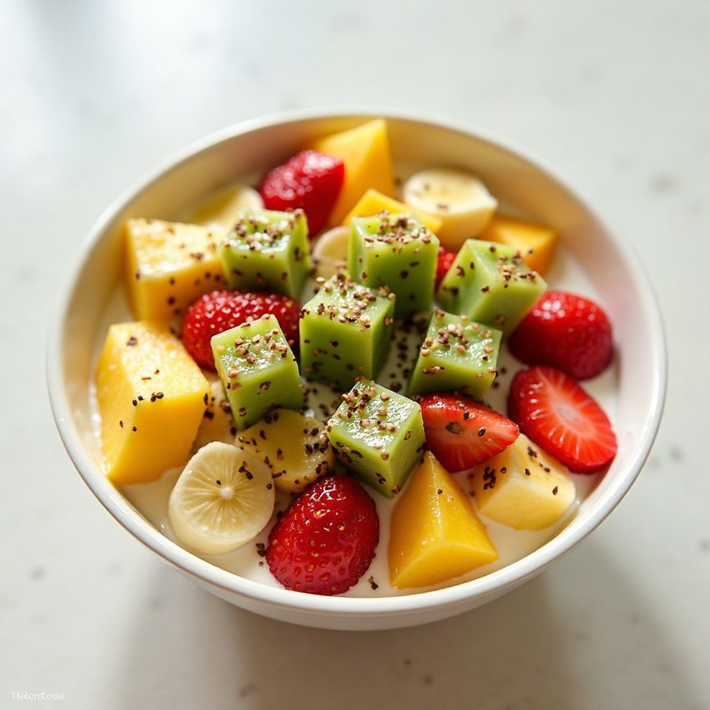 Este postre es bajo en calorías y alto en fibra y antioxidantes gracias al cactus y frutas tropicales. El uso de semillas de chía o linaza añade un beneficio adicional, como ser una fuente de omega-3 y fibra soluble que puede mejorar la digestión y la sensación de saciedad.