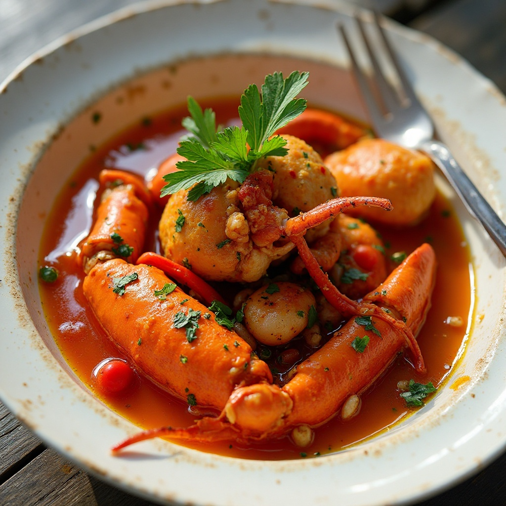 La Caldereta ha sido tradicional en las Islas Baleares desde tiempos antiguos, adaptándose con ingredientes locales y variedades regionales de mariscos. En Playa de Santo Tomás, se celebra no solo por su belleza natural sino también por su rica escena gastronómica, donde platos como la Caldereta son estrellas. Esta receta, al incorporar langosta, refleja la fusión de tradiciones mediterráneas con influencias más recientes, ofreciendo un banquete que combina historia culinaria con la frescura del mar.