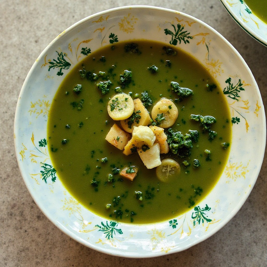 Receta de Caldo Verde con Espinacas y Alho Francês para Santa Maria da Feira, Portugal