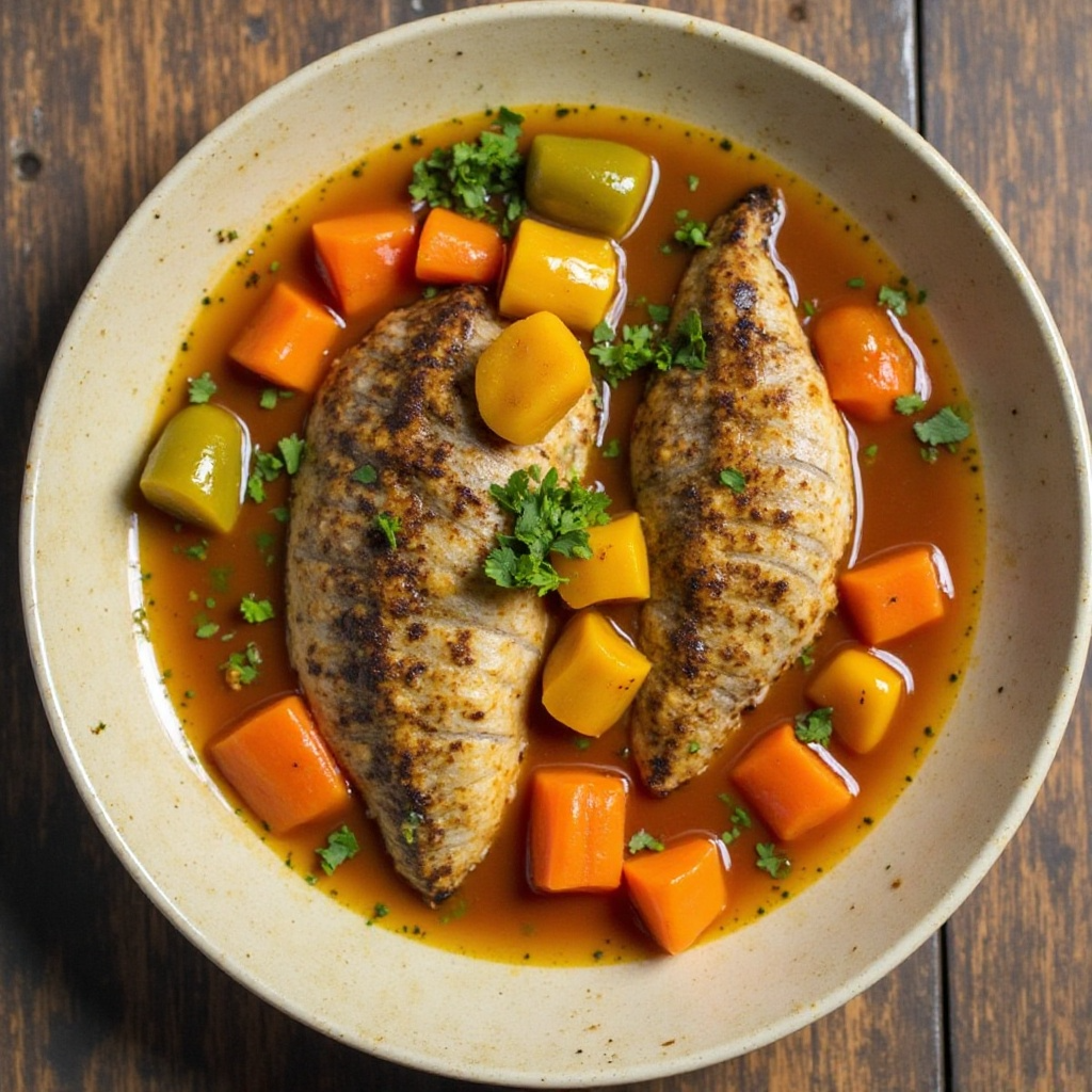 El Calulu de Pescado es una opción saludable al incluir pescado, rico en proteínas y ácidos grasos omega-3. Los vegetales aportan vitaminas y minerales esenciales. Si prefieres una versión más ligera, puedes reducir la cantidad de aceite de oliva o usar aceite de coco para un toque diferente.