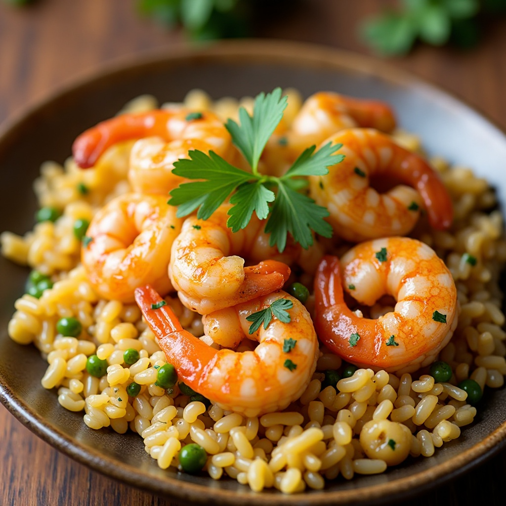 6. Sirve caliente el camarón con el arroz, decorando con perejil picado si lo deseas.