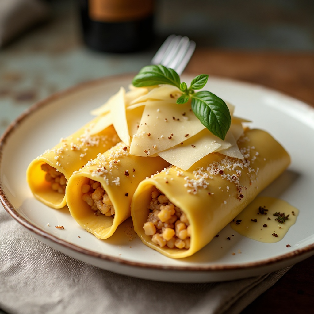 El Queso Idiazabal es un símbolo del patrimonio gastronómico de Navarra, España. Su sabor robusto y su textura firme lo hacen ideal para ser usado en platos como los canelones, donde su intensidad contrasta bien con la suavidad de las patatas y el relleno de los canelones. La receta aquí presentada es una versión creativa que fusiona ingredientes tradicionales con un toque moderno, típico de restaurantes galardonados como Amorabieta-Etxano.