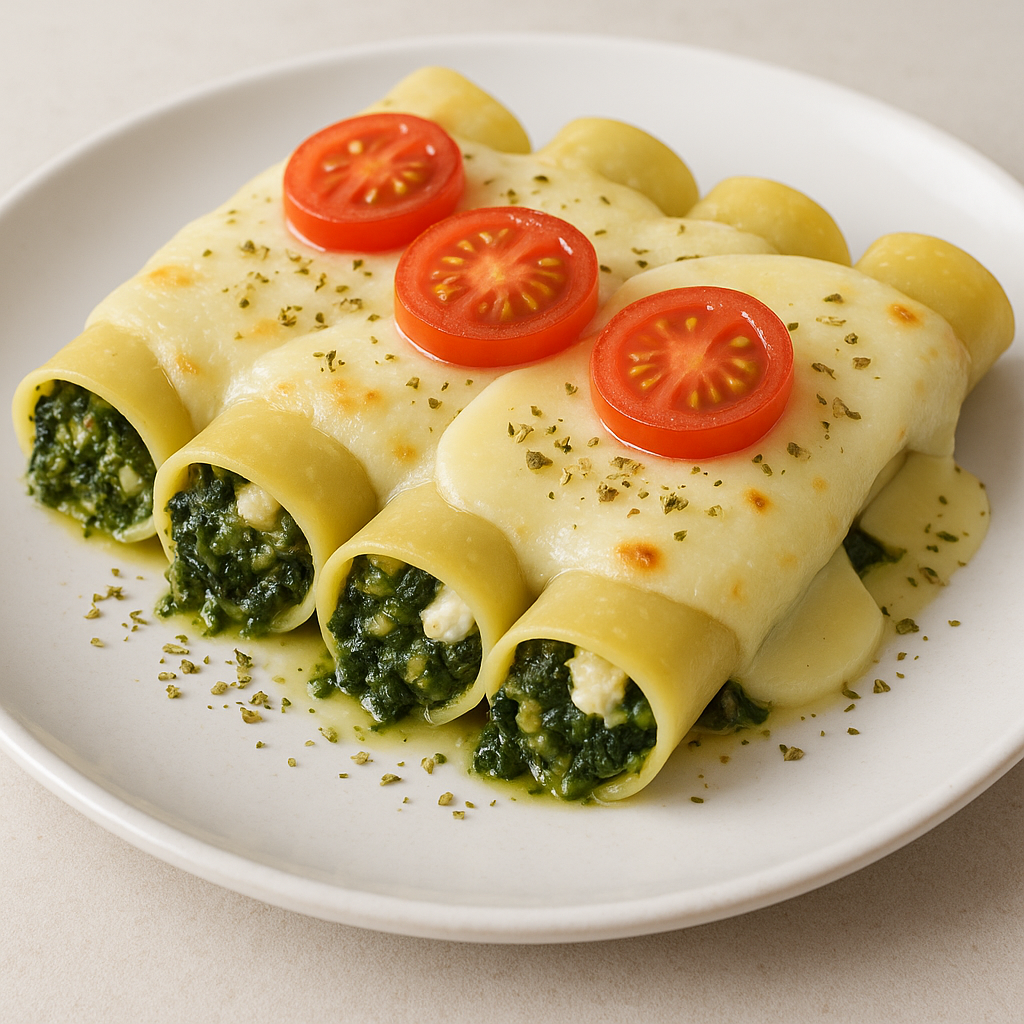 Este plato es una fuente rica de proteínas, gracias al queso de cabra y los canelones. Las espinacas son bajas en calorías pero altas en fibra, vitaminas y minerales. El aceite de oliva utilizado en la preparación proporciona ácidos grasos saludables, lo que lo convierte en una opción equilibrada para disfrutar sin culpa.