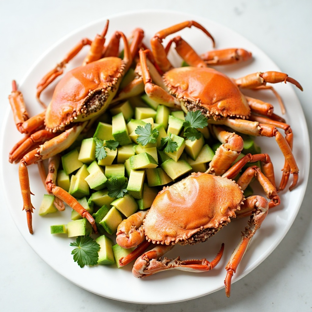 Los cangrejos son una fuente rica en proteínas y omega-3, esenciales para la salud del corazón. La ensalada de aguacate y jícama aporta grasas saludables y fibra, contribuyendo a una dieta equilibrada. Recuerda que el aguacate es un alimento delicado y se oxida rápidamente, por lo que es importante mezclarlo justo antes de servir.