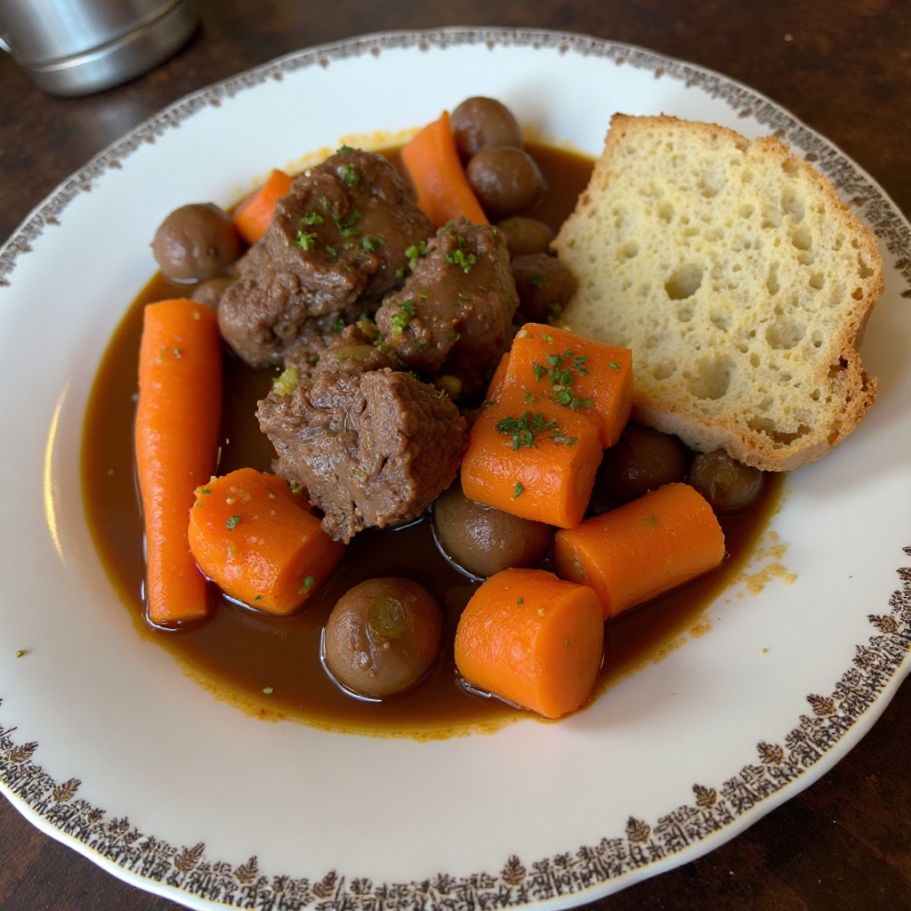 La Carbonade Flamande es un guiso tradicional de carne de res cocido lentamente con cerveza flamenca y especias, originalmente de Bélgica. Esta versión adaptada para los paladares de Valenciennes en Francia, juega con los matices locales, ofreciendo un toque más suave y delicado en la preparación y elección de ingredientes.
