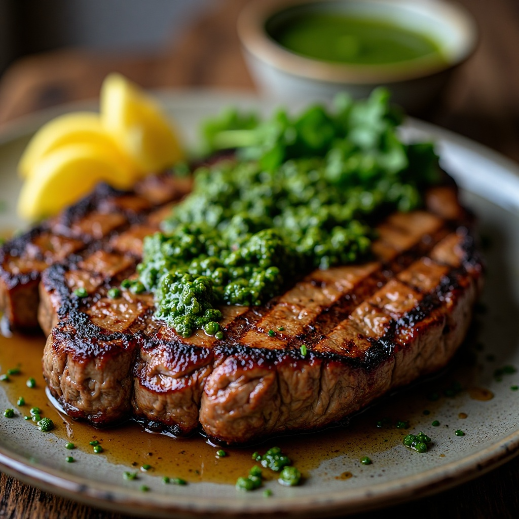 - Prepara tu parrilla o sartén para cocinar a fuego medio-alto. Cocina la carne hasta que esté a tu gusto, aproximadamente 4-5 minutos por lado para obtener una carne jugosa y bien cocida. Sirve inmediatamente con un poco de salsa chimichurri.