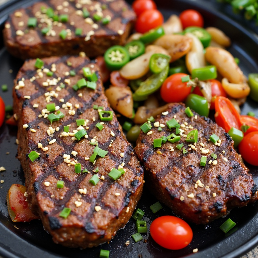 6. Corta la carne asada en rodajas finas o láminas. Sirve las rodajas de carne con el guiso de vegetales, salteado en la misma sartén que la carne, agregando cebollín fresco justo antes de servir para mantener su frescura y sabor.