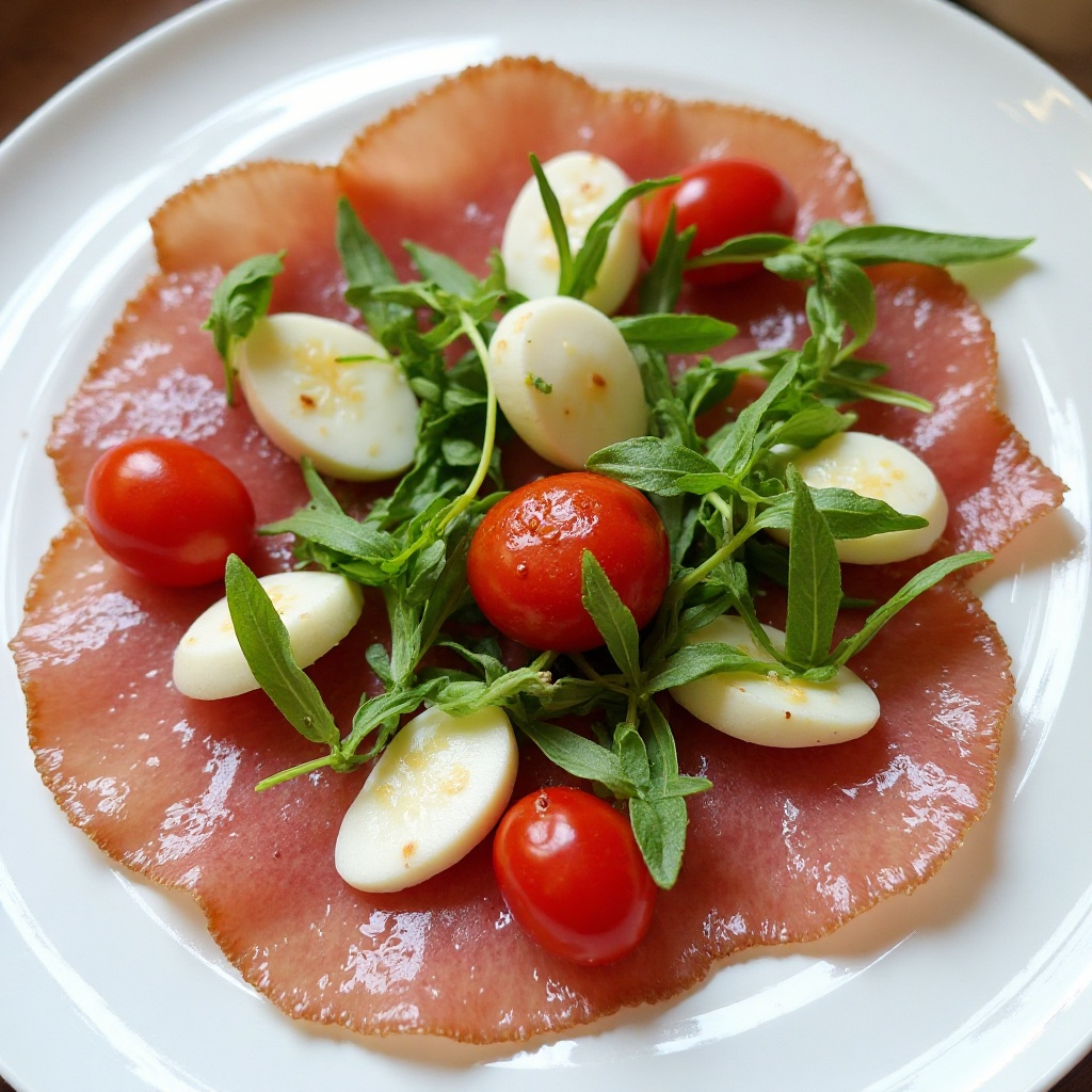 El speck es una fuente saludable de proteínas y contiene ácidos grasos omega-3. Los tomates cherry son ricos en antioxidantes. El carpaccio, con su preparación simple y minimalista, permite que los ingredientes mantengan sus nutrientes naturales. Asegúrate de usar un aceite de oliva extra virgen de buena calidad para realzar el sabor y obtener beneficios adicionales de sus propiedades saludables.