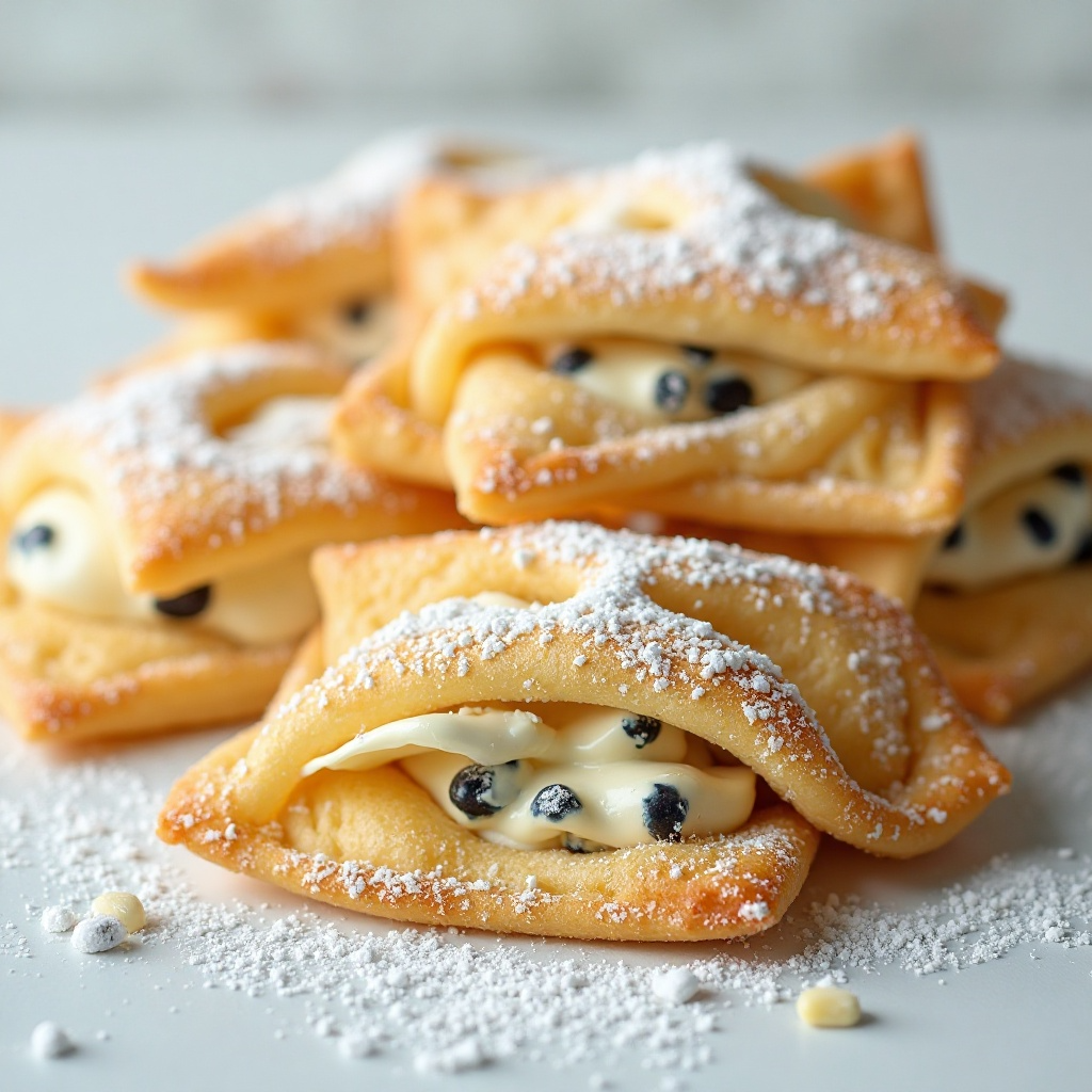 - Rellena cada trozo de pasta con una cucharada de queso picado o rallado y azúcar en polvo. Asegúrate de que no queden espacios vacíos, ya que esto podría causar que se abran durante el horneado.