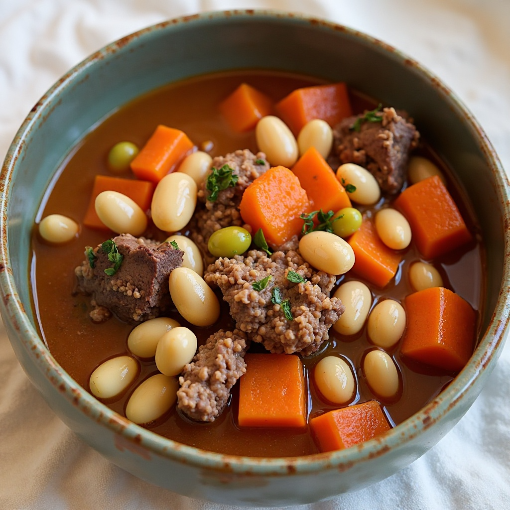 La Cassoulet es un plato tradicional de la región de Languedoc-Rosellón en el sur de Francia, especialmente famoso en Carcasonne. Este guiso se caracteriza por su consistencia rica y su sabor profundo, resultado de una combinación de carnes (usualmente cordero y tocino), alubias blancas, y verduras como el apio. La receta aquí proporcionada se adapta a aquellos que buscan una versión más ligera, manteniendo el espíritu del original.