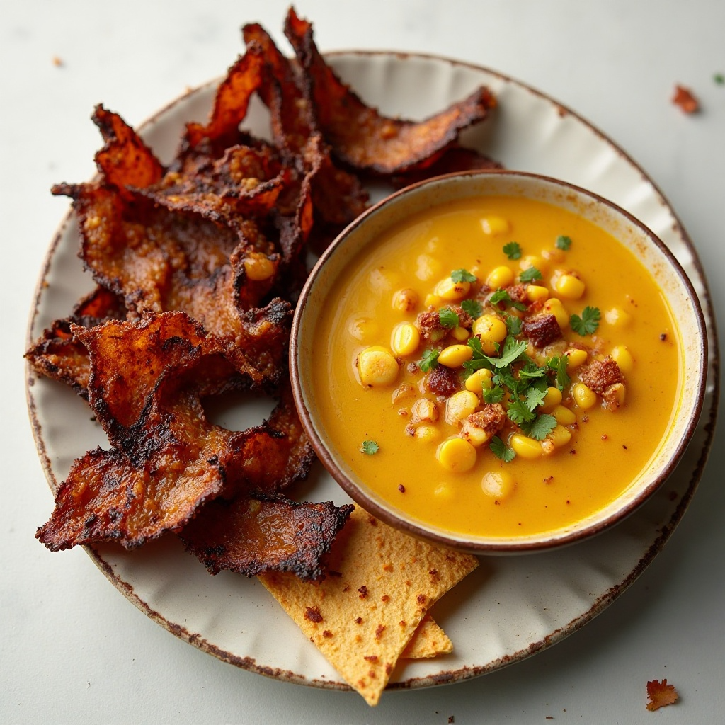 - Sirve la sopa de maíz caliente con un trozo de Cecina de Venado a un lado. Acomoda los ingredientes de manera estética y acompáñala con tostadas o tortillas para una textura crujiente.