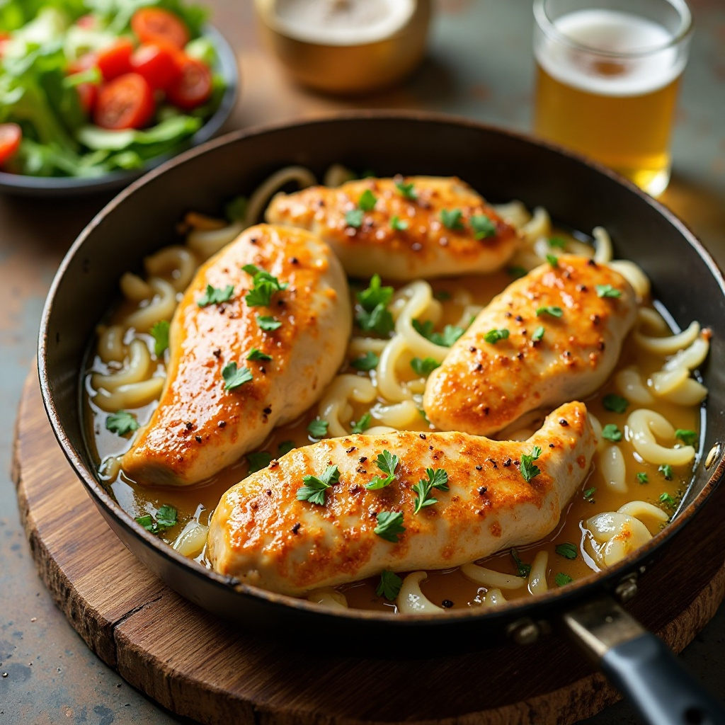 - Sirve el pollo junto con la salsa resultante, acompañándolo con una ensalada fresca para un contraste de texturas y sabores.