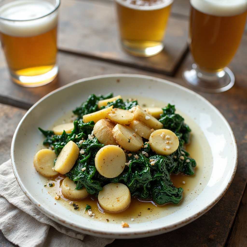 Esta receta es una fusión única entre la experiencia gourmet de los ingredientes como la salsify (una raíz similar al jengibre) y las espinacas, y el sabor distintivo de una cerveza artesanal Ale-Style. La elección de ingredientes locales y la elaboración cuidadosa permiten disfrutar de un plato con notas complejas tanto en su preparación como en su degustación.
