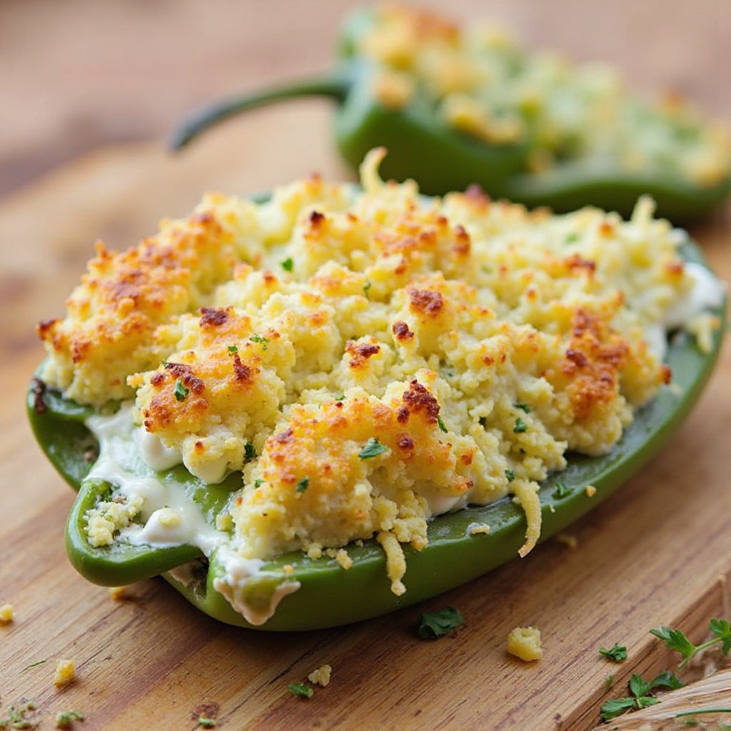 4. Rellena los chiles poblanos con la mezcla de queso y crema. Coloca los chiles rellenos en una bandeja para horno.