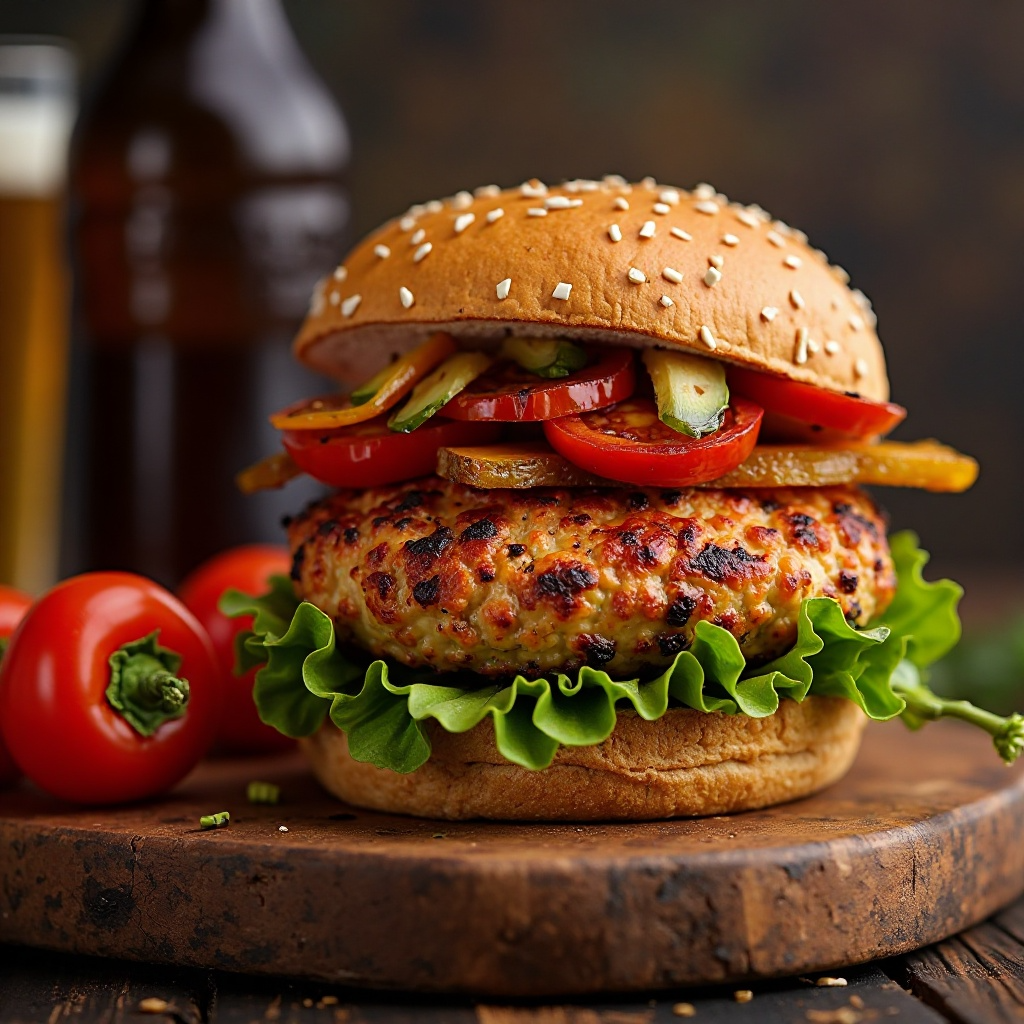 Receta de Cerveza Artesanal y Hamburguesa de Cerdo con Pimientos Asados