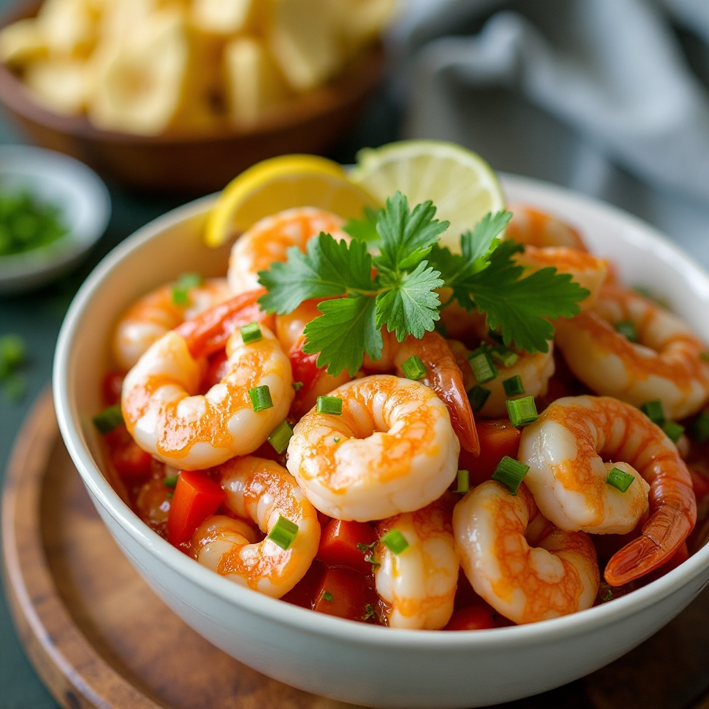 El ceviche colombiano es una versión refrescante y colorida del clásico ceviche peruano, adaptado con ingredientes locales y frescos de la costa colombiana. Este plato es perfecto para disfrutar en los días calurosos, lleno de camarones frescos y especias que aportan un sabor vibrante y único.